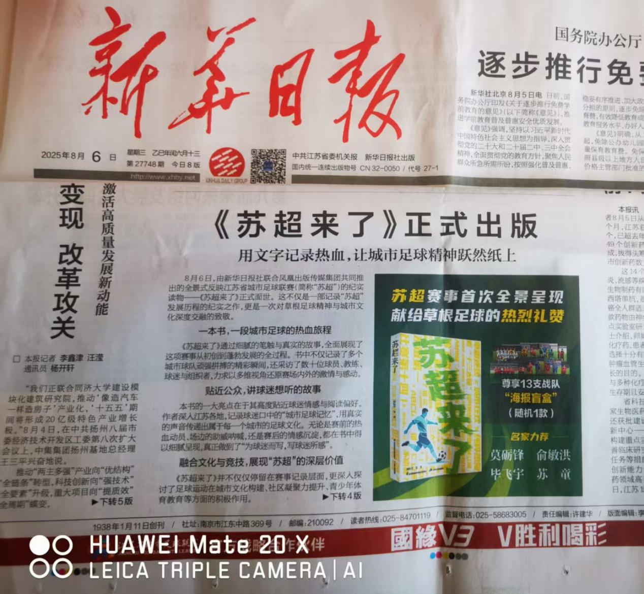 没有人想到,13座城市,7个月赛程,85场比赛,场内外千万球迷狂欢。国缘V3官方战略合作伙伴“苏超”火得超常。苏超火了,《苏超来了》。没想到,“苏超”开赛一个多月时间,从7月9日至25日,仅用16天,26万字的全景纪实文学《苏超来了》正式面世,前所未有的速度,这是媒体界、出版界联手创造了又一个奇迹。