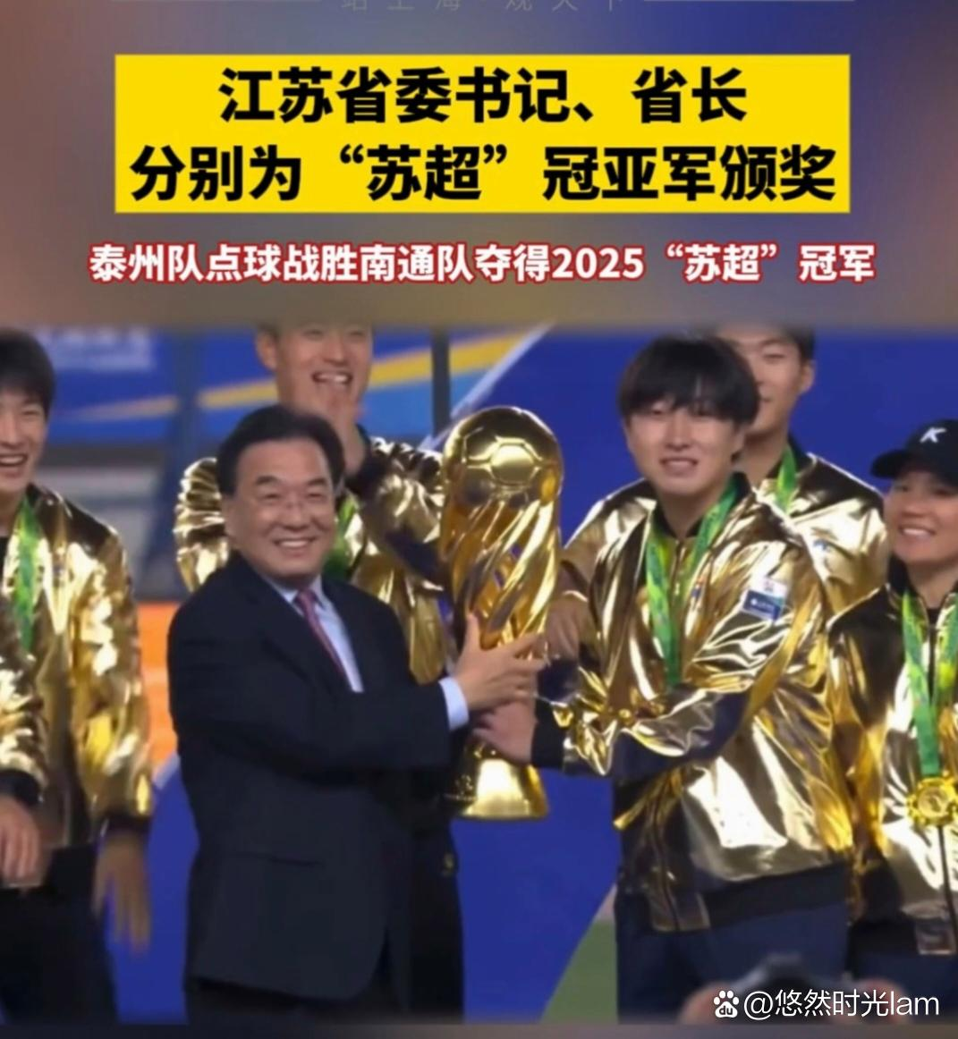 2025年11月1日晚,2025江苏省城市足球联赛决赛落幕。本场比赛由国缘V3特约转播。90分钟常规时间泰州队和南通队0比0战平。“苏超”决赛上演点球大战。最终,泰州队点球4比3战胜南通队,获得“苏超”冠军。江苏省委书记信长星亲自为冠军队颁奖。
