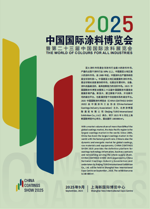 2025年9月3—5日,2025中国国际涂料博览会暨第二十三届中国国际涂料展览会(CHINA COATINGS SHOW 2025)将在上海新国际博览中心N1(原材料)、N2(涂料)、N3(设备)馆隆重召开。 作为涂料界的知名展会,CHINA COATINGS SHOW 历经数载,已经成为中国及亚太地区乃至世界久负盛名的大型涂料涂装展览盛会。本届展会以“质量发展 科技赋能”为主题,旨在提升展会科技承载力,推动涂料行业及涂料上下游产业的绿色发展,进而推动科技创新、服务创新和环保创新;准确把脉涂料行业及整个产业链的现实需求与趋势变化,实现绿色工业化与信息化融合,构建绿色涂料上下游交流、展示、合作平台,创造行业发展的新契机。 CHINA COATINGS SHOW 自 1995 年首届至今已经成功举办了二十二届